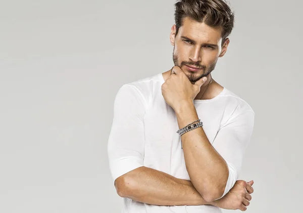 • Blaze Stainless steel men’s grey stone and agate ball bracelet Giulia'secret