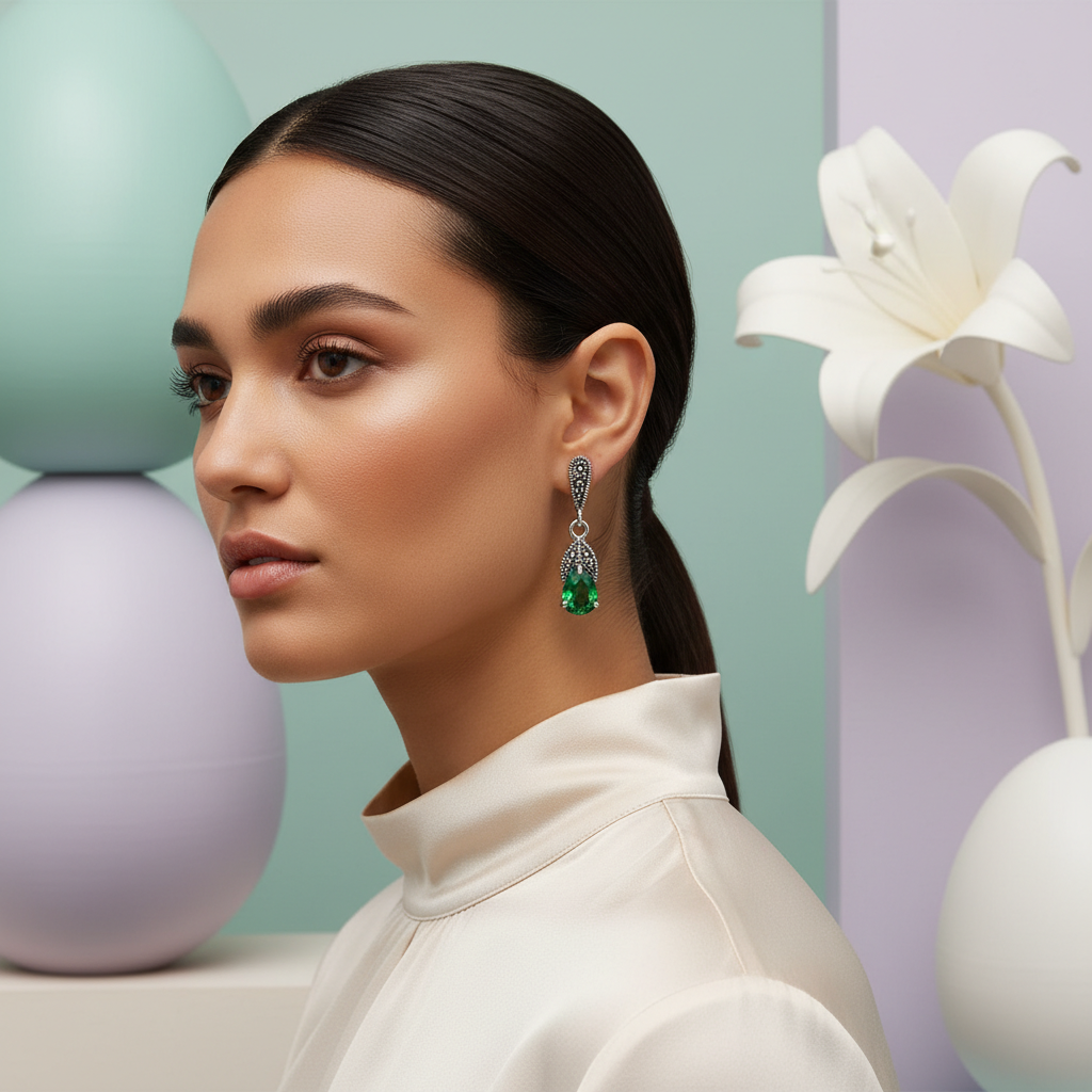 Make a bold statement with these sterling silver marcasite drop earrings. Measuring 30 x 7mm, their sleek design adds a touch of edgy elegance to any outfit. Perfect for those who dare to stand out with subtle sparkle and timeless style.